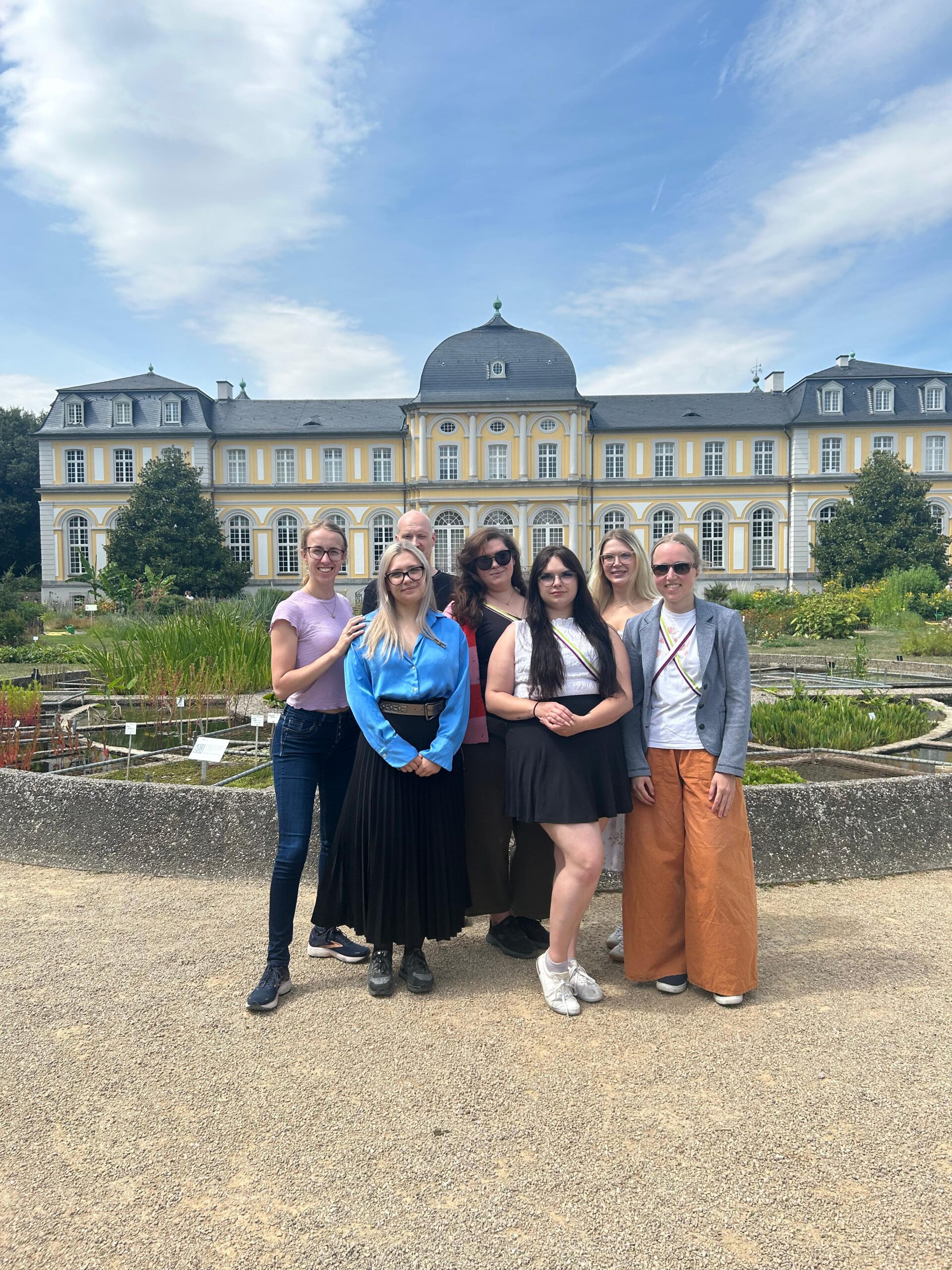 Unsere liebe Bundesschwester Birte hat sich zuvor in die Geschichte der Stadt eingelesen und konnte uns so einen historischen Einblick geben. Die Platanenallee und Neckarinsel war unser Startpunkt und eröffnete uns auch gleich einen optimalen Blick auf die „Schokoladenseite“ der Stadt. Danach ging es durch die Straßen und Gassen der Altstadt, vorbei an der Stiftskirche und dem Rathaus, von wo aus es dann mit einem kleinen Anlauf hoch aufs Schloss ging. Dort wurden wir von zwei imposanten Löwenköpfen am Eingangstor begrüßt.